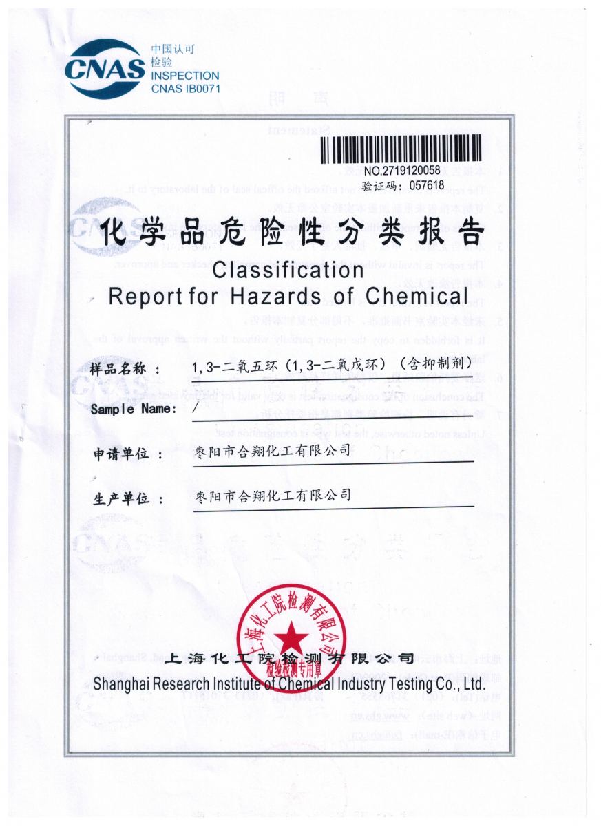 別 名:乙二醇縮甲醛;1,3-二噁戊烷;1,3-二氧五環;1,3-二氧雜戊烷;1,3-二氧戊環;二噁戊烷;二氧戊環;1,3-二氧環戊烷;1,3-二噁烷